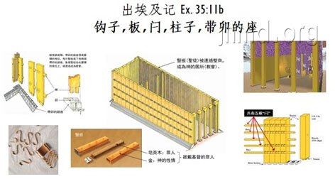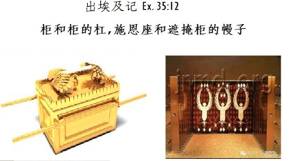 这些会幕主体结构的项目分得很细,种类数量也很多,但摩西都没有说明。然后是约柜和柜的杠,施恩座和分隔圣所和至圣所的幔子,也没有详细的说明。(35:12)