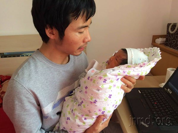 满月后的一周左右,我们发现秋雨的肚子有点胀大,而且睡觉时呼吸声音急促。开始我们还以为是吃奶太多引起,但两天后,我们发现她胀的特别厉害,整个肚子都鼓得像个气球一样,加上有些哭闹,12月16日那天,我们便带她去北医三院做了血常规检查。副主任儿科医生看了看检查报告,又听了听她的心肺情况后,很严肃地告知我们:“孩子可能有先天性心脏病,建议你们马上住院观察!”