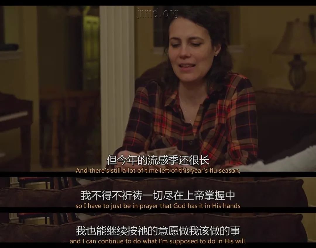 她在Netflix纪录片《流感大流行》中受访时说:“我不相信若有大疫症爆发,我们这里能够应付得来。“她语带无奈地诉说。“大家期望我们当超人,期望我们竭尽所能。我为我们所接触的每个人尽⼒做到最好。我能应付现在繁重的⼯作,能完成使命,因为得到所需的帮助,就是家人的⽀持和信仰的⽀持。我知道有上百人甚至上千人的生命,因为跟我接触后⽽有所不同。这是我的使命。在我们私人时间的聚会⾥,有⼀个最重要的事,就是与朋友⼀起祷告的时间。”